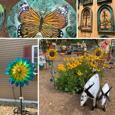 We are definitely seeing gardens becoming year-round delights with brightly hued accents. Metal animal figures are a cute, fun choice you’ll see popping up in lots of local gardens. Tuck them into some greenery for a little surprise or have them stand out and make a statement. From skunks to chickens and goats to butterflies, you can gather a whole menagerie.
